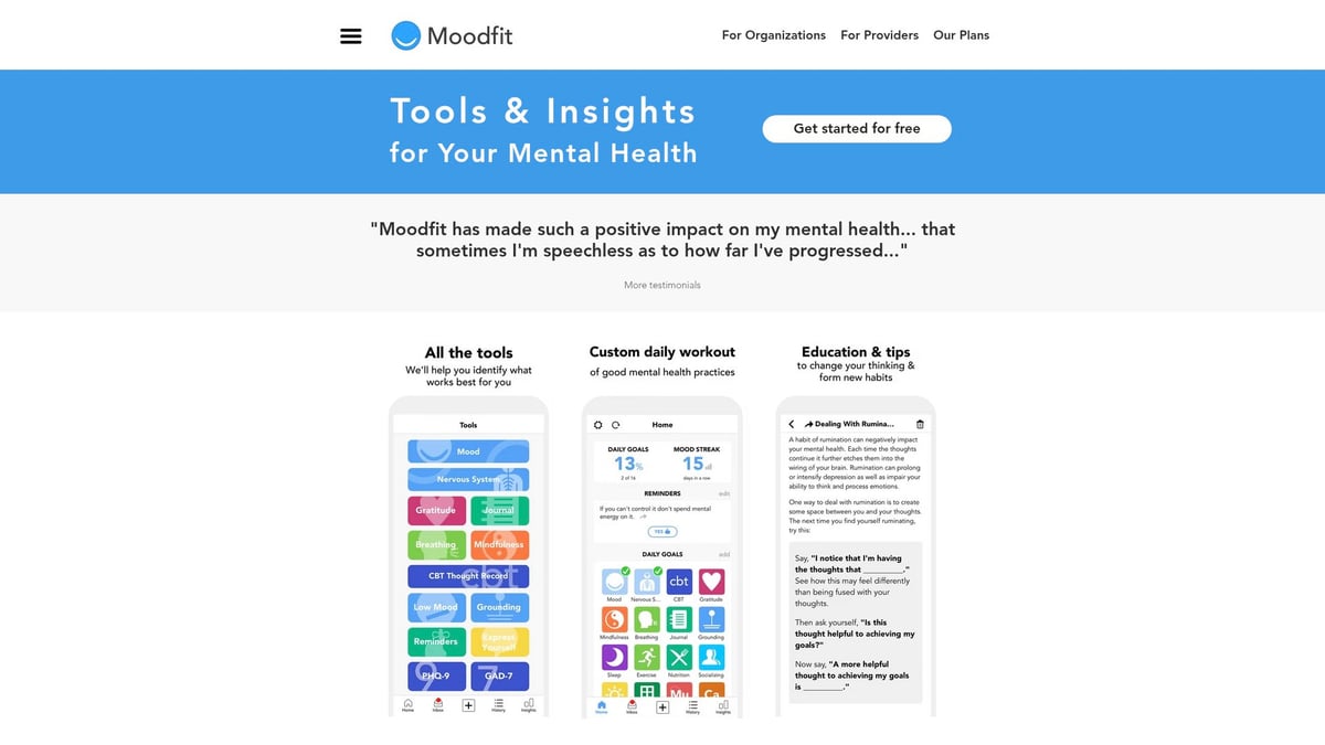 | Moodfit | Free / $9.99-79.99 | All-in-one wellness toolkit | Data lovers, therapy support |