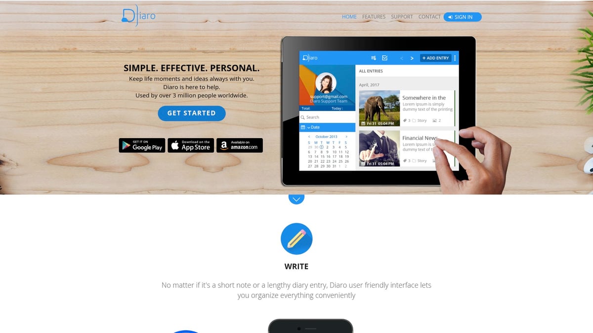 Pricing: Free with ads; Diaro PRO $5.99/year.